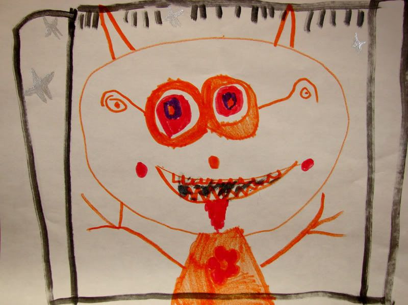 In honor of Halloween, Skylar's drawings took a creepy turn. She seemed to have a lot of fun freaking herself out. Here are a few examples: