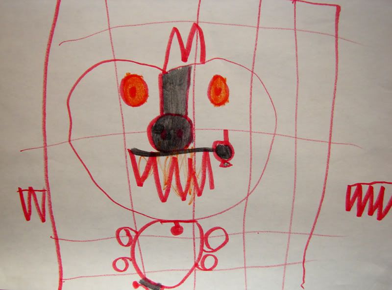 "This is a mean pig monster. They have to keep him in a cage because he laughs at the children when they fall down."____________________