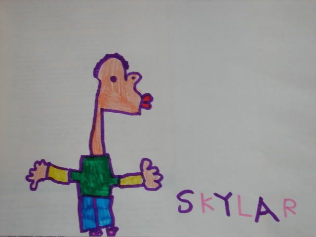 This page was constructed to display some of the creations from our five year old, Skylar. She's always loved nothing more than drawing and coloring, but recently her drawings are migrating away from the round smiley-face stick people, and she's starting to add details from her own perspective.